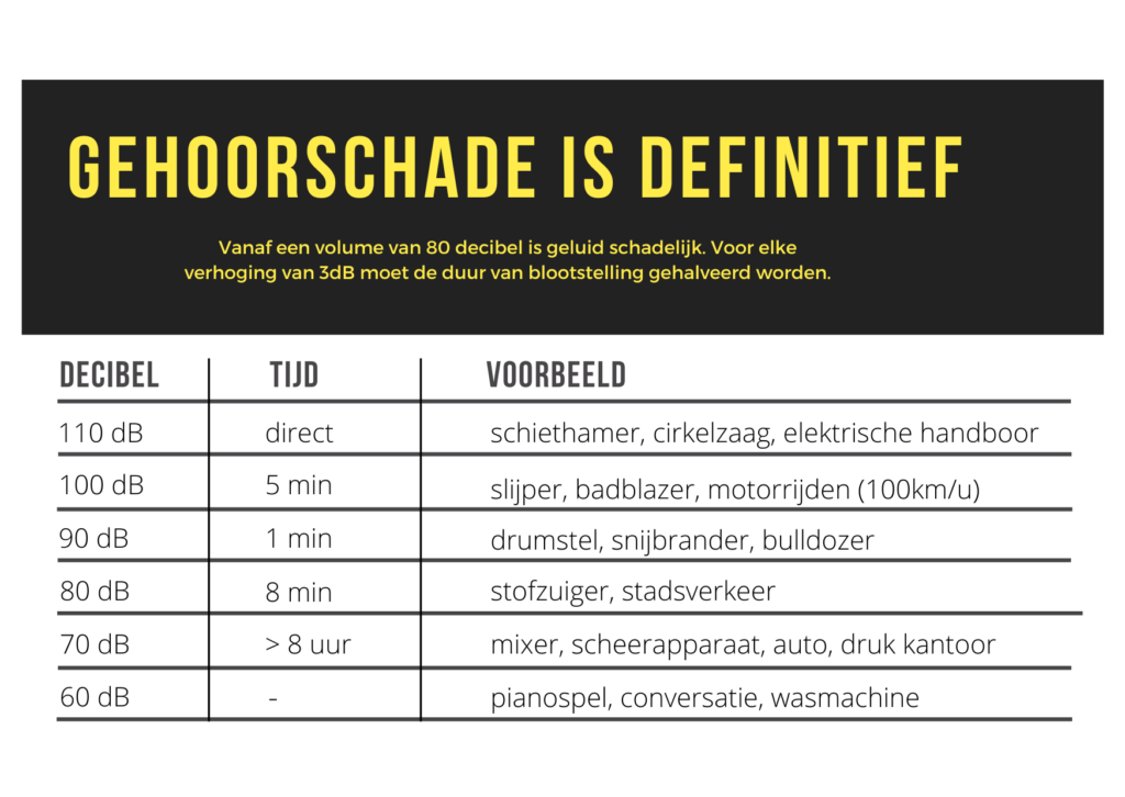 “Alle elektrische gereedschappen hebben een geluidsniveau van boven 80 decibel. Dit getal in db’s is een belangrijke grens. Hoe langer je blootstaat aan harde geluiden hoe schadelijker. Er is geen medicatie voor gehoorbeschadiging. Voor een slechter gehoor zijn er gehoorapparaten maar voor een aandoening als tinnitus helemaal niets. Het is definitief en onomkeerbaar! Stress of niet lekker in je vel zitten verergeren de situatie. Stiltes moet je vermijden om geen last te krijgen van de piep of de ruis van de tinnitus!” benadrukt Jos.